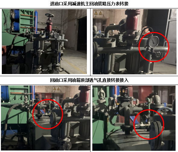 進油:采用現有接頭進行轉接的形式,接頭常規為M14或者G1/4的三通,保留原測壓接頭或壓力表